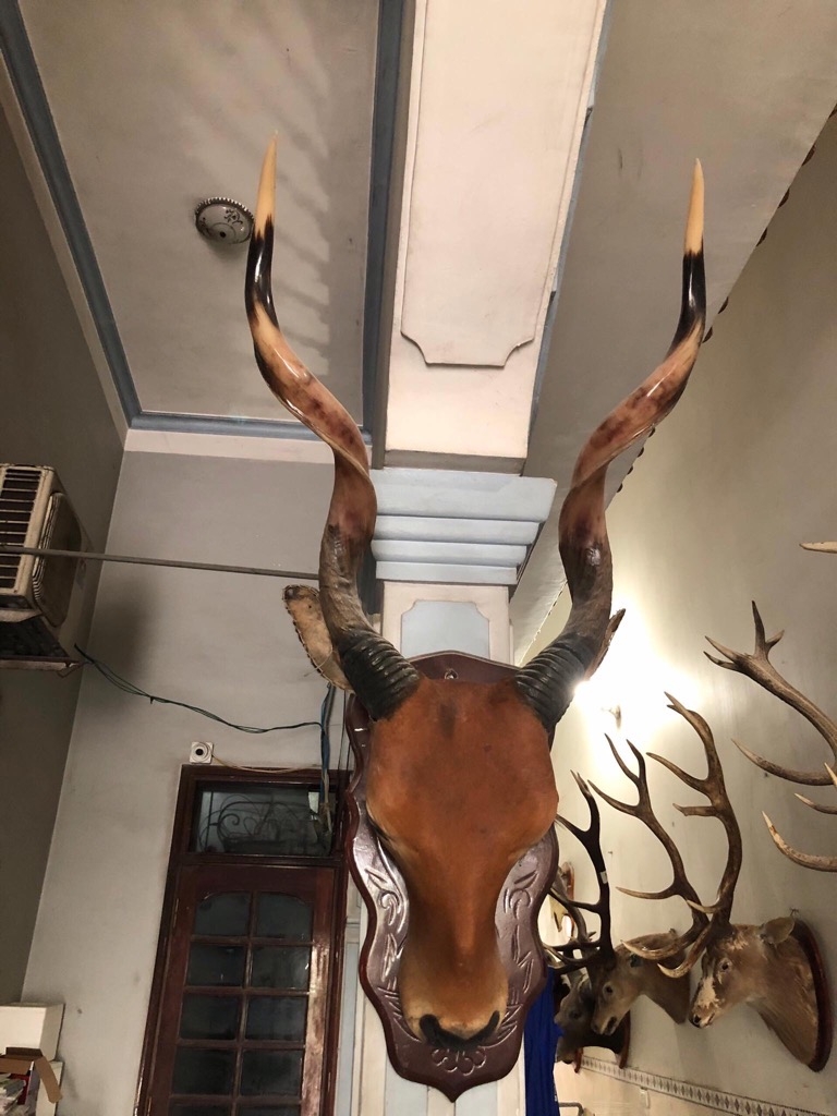 sừng linh dương xoắn lên đầu da( da bò) treo phong thủy chiêu tài Lộc cho gia chủ